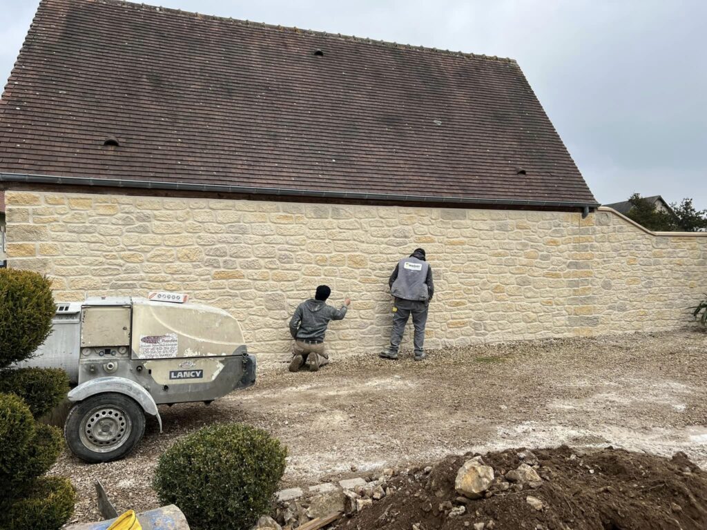 Avant / Après. Chantier de rénovation d’un mur extérieur près de Vernon, dans l’Eure